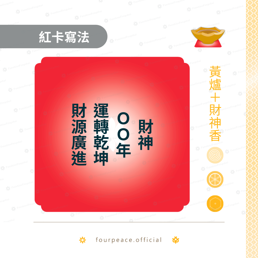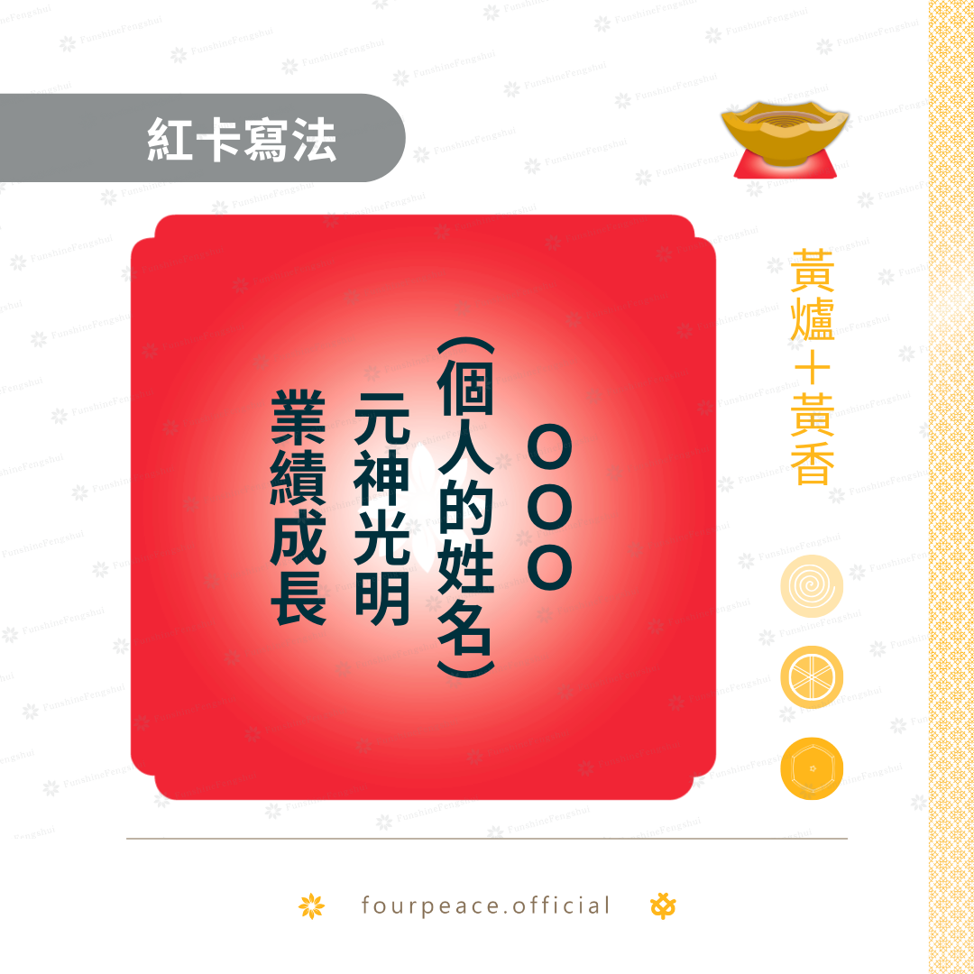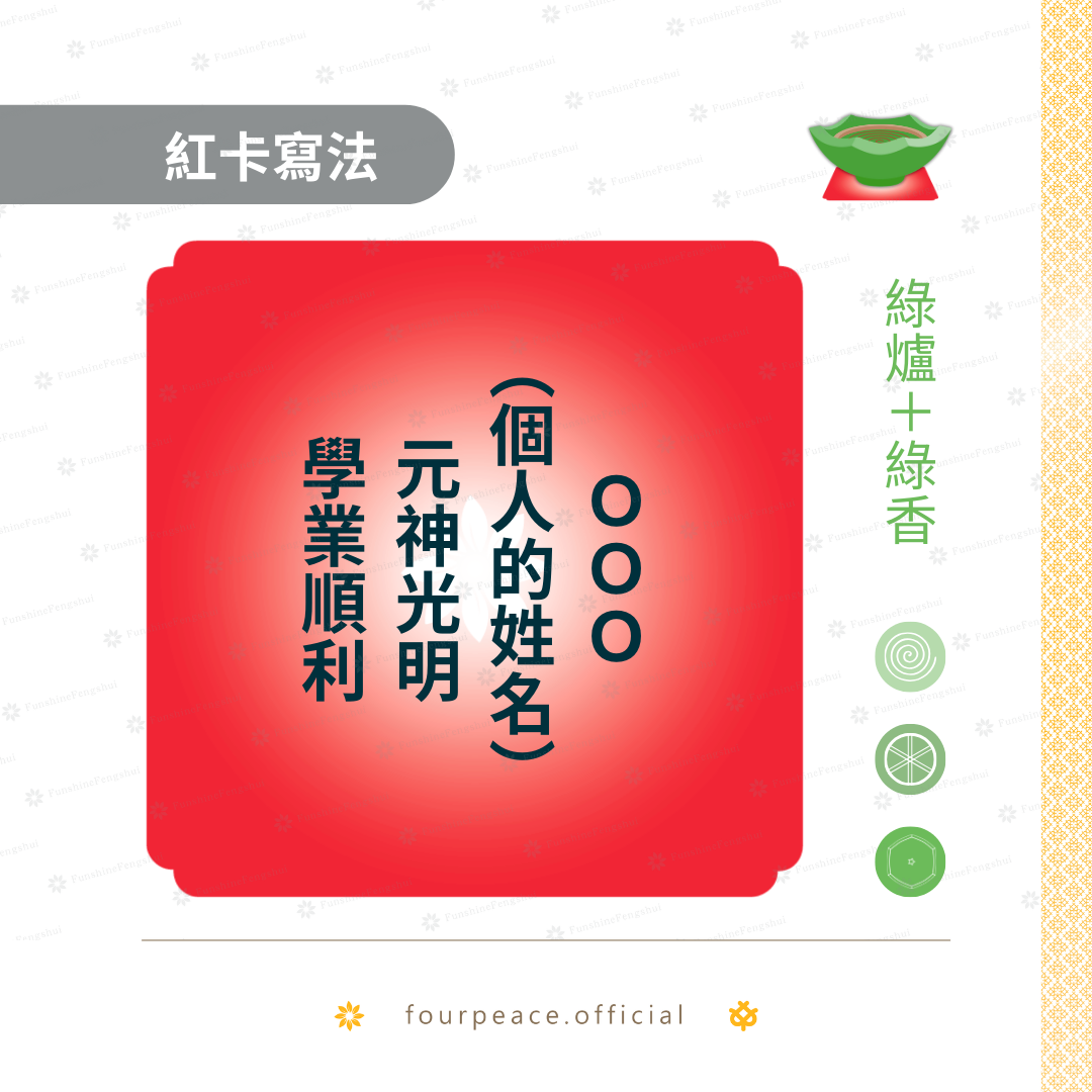 以下分享常用的祈福紅卡寫法提供典友參考,請使用正向用語書寫。香品顏色基本以下方備註為主,部分可彈性運用,通則為: